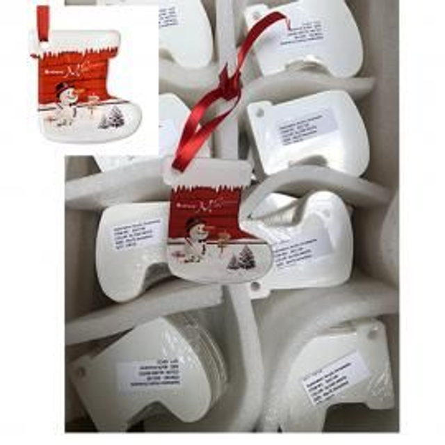 Adorno navideño fabricado en metacrilato transparente. Disponible en varios diseños: copo, bota y bola. Incluye lazo colgador en color rojo.