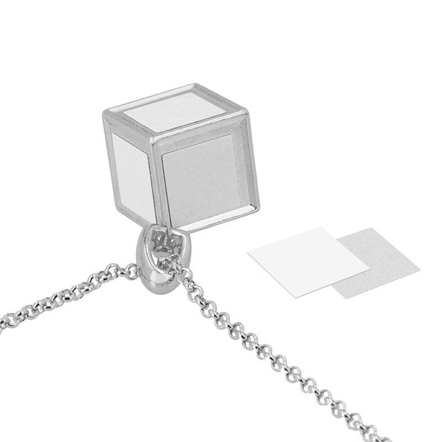 Colgante con forma de cubo personalizable. Cadena ajustable con cierre mosquetón.