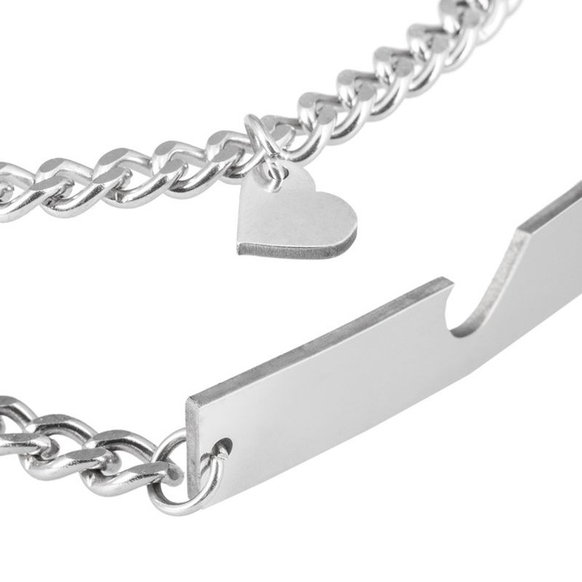 Charm corazón en una esclava, encajable en la medalla rectangular de la otra.