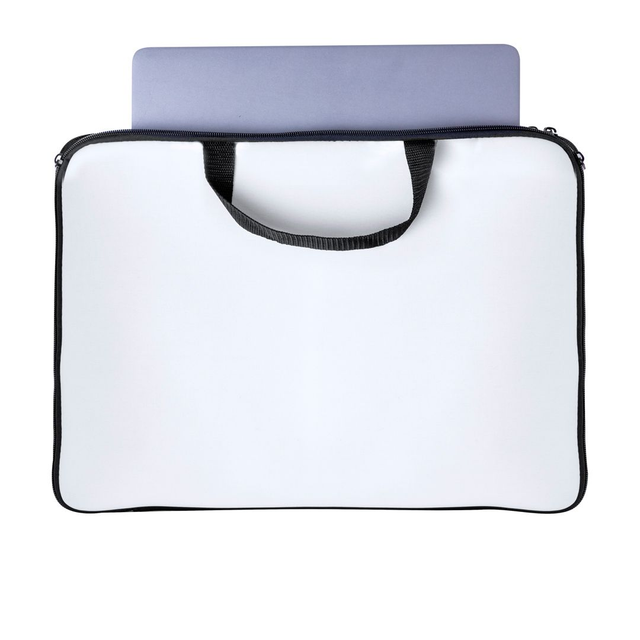 Práctica funda para ordenador portátil de hasta 15 pulgadas en soft shell. Cierre por cremallera de doble tirador en color negro y dos asas.