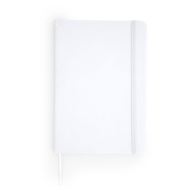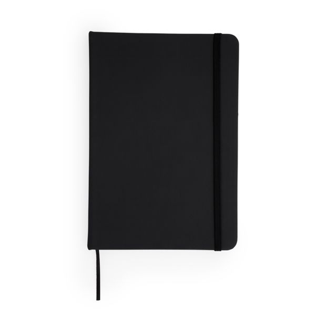Bloc de notas con tapa rígida de polipiel. Marcapáginas y banda elástica. 100 hojas lisas.