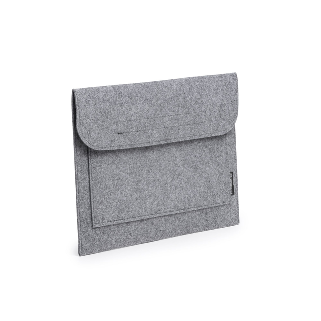 Funda para portátil de 15" realizada en fieltro reciclado con diseño vigoré, una opción perfecta para proteger tu portátil de manera segura y sostenible. La funda cuenta con dos compartimentos adicionales que te permiten guardar accesorios y documentos y solapa con cierre de velcro. Esta funda brinda una opción adicional para la protección de tu dispositivo.